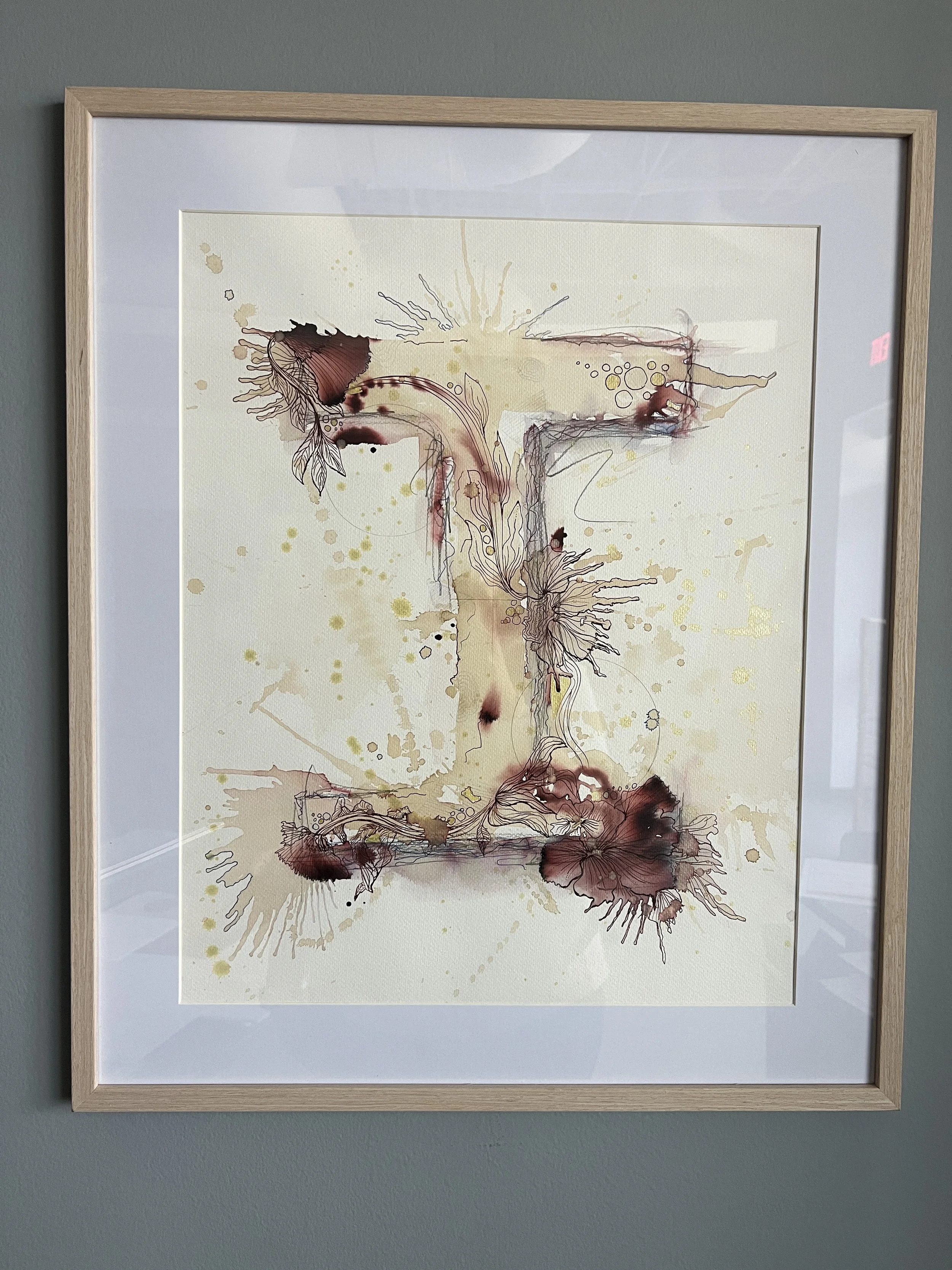 “S” Monogram Artwork Reproduction. Original is sold, only reproductions available. Please inquire for timeline of new original. PLEASE NOTE: 6”x8” fine art archival matte paper reproduction. Reproductions are NOT framed.
